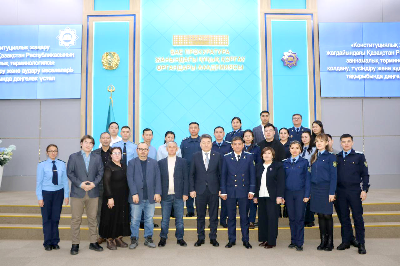 Заң терминологиясын қолдану, түсіндіру және аудару мәселелері тақырыбында дөңгелек үстел өтті27 ақпанда ҚР Бас прокуратурасы жанындағы Құқық қорғау органдары академиясында «Конституциялық жаңару жағдайындағы Қазақстан Республикасының заңнамалық терминологиясы: қолдану, түсіндіру және аудару мәселелері» тақырыбында дөңгелек үстел өтті. Аталған шара қазақстандық заңнамадағы терминология мәселелерін кешенді зерделеуге қатысып жүрген ғылыми және сарапшы қауымдастықпен пікір алмасу, конституциялық жаңару жағдайында заңнамалық терминологияны қолдану, түсіндіру және аудару мәселелерін талдау және оны жетілдіру бойынша ұсыныстар әзірлеуге арналды. -